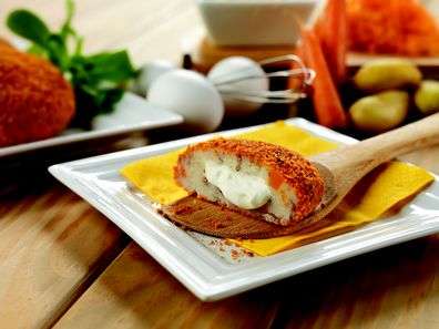 Formez des petites boules et fourrez chaque boule d’une demi-portion de fromage Kiri®, puis gardez au frais pendant 1 heure pour faciliter l’enrobage.