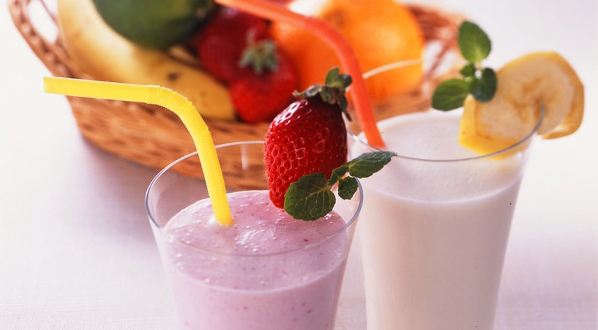 Votre enfant verse le mélange dans des verres et il décore avec des fruits.