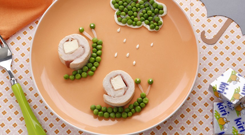 Votre enfant étale dessus le fromage Kiri® préalablement écrasé, et roule le tout.