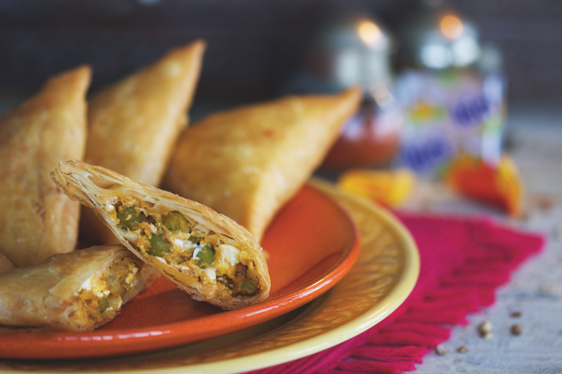 Vous pouvez servir les samoussas avec une sauce à base de fromage Kiri, ail haché, coriandre ciselée et un peu de jus de citron.