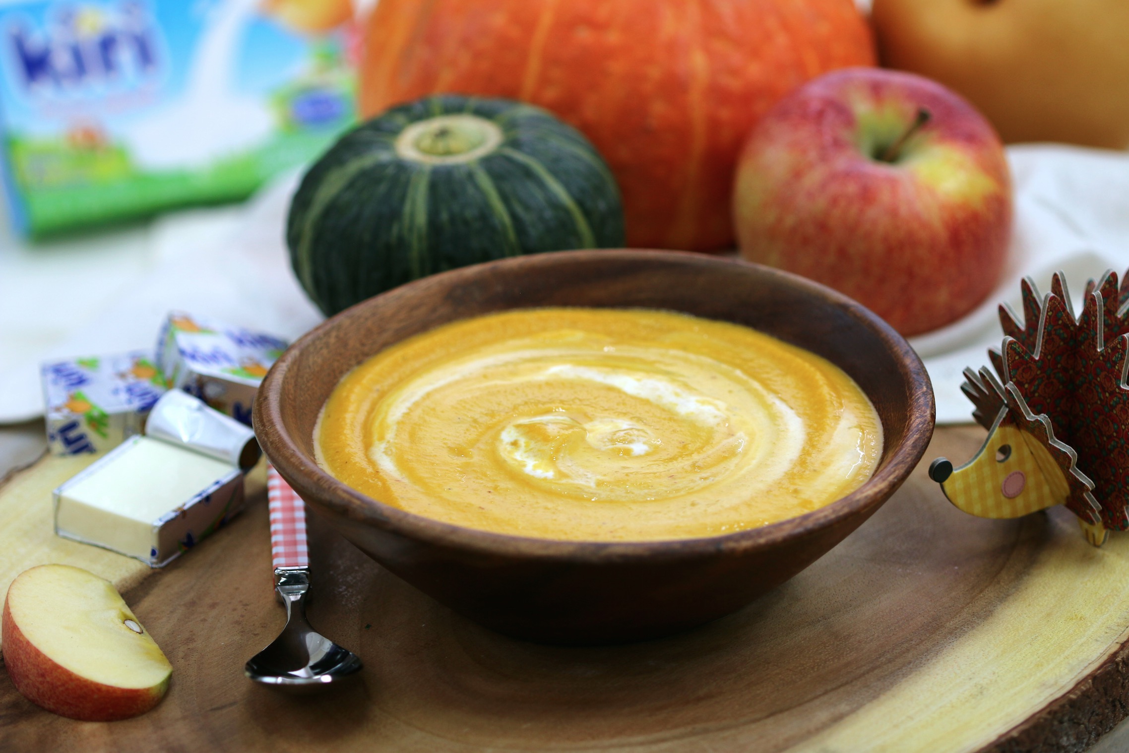 Mettez les morceaux de potiron, pomme et poire dans un mixeur. Ajoutez les portions de Kiri® et un peu d'eau de cuisson. Mixez jusqu'à obtention d'une texture onctueuse. Ajustez la consistance en ajoutant petit à petit l'eau de cuisson.